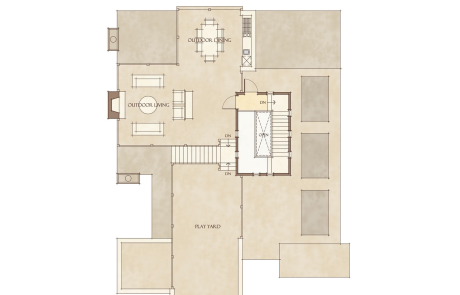 The lower floor master bedroom responds to the trend of couples having children later in life after establishing their careers and their preference for single story living as they age in place. Lastly, the roof terrace area replaces the land lost to the footprint of the home with usable “yard” area and access to vistas not otherwise available. Likewise, flat roofs are more popular with buyers and home builders are able to offer more modern designs because of advances in roofing technology and improved warranties.